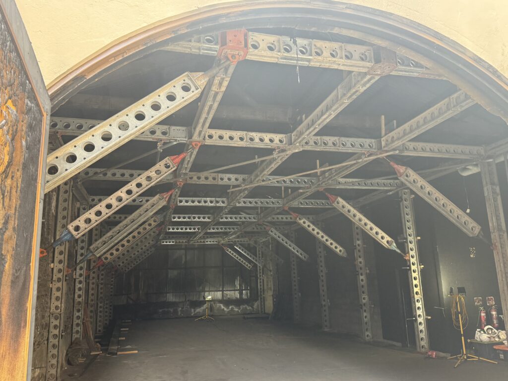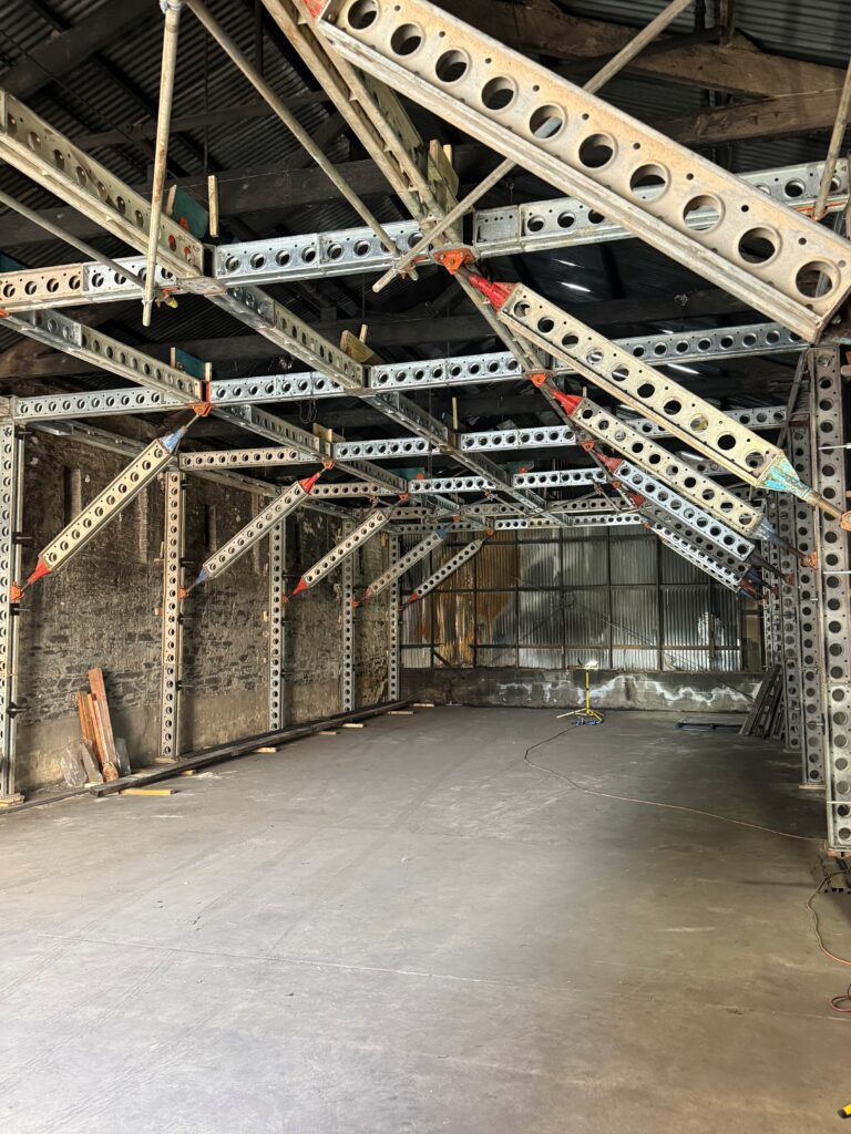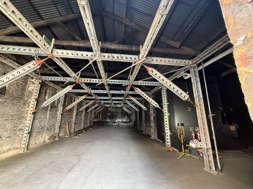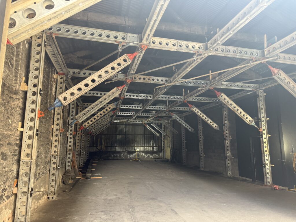 The Slim Shore Super Structure was designed and engineered to hold the walls in line whilst the roof would be re-built. The project was delivered with a high level of planning and detail around the rigging solutions and mechanical aid.
