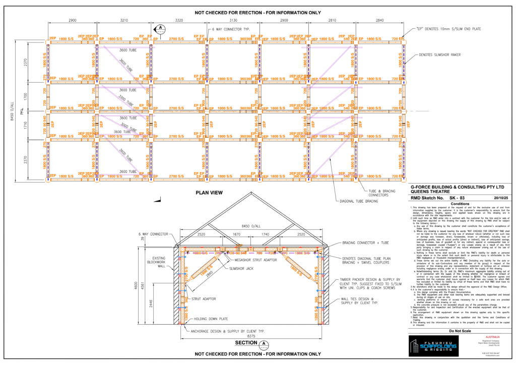 Fleurieu Scaffolding was approached by G-Force and RMD to perform the erection of the Slim shore Super Structure for the ‘Queens Theatre Make Safe Project’.